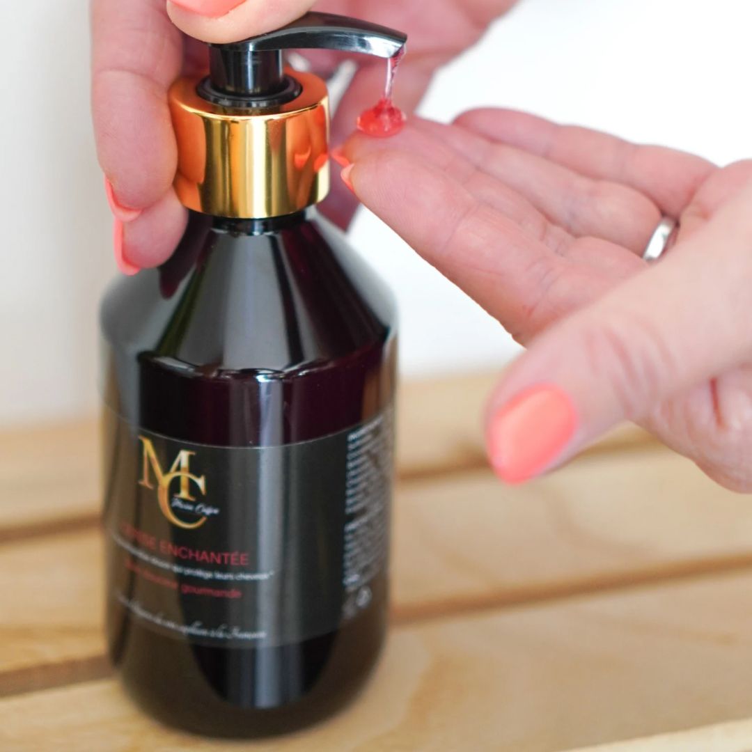 Un nuage de douceur à la cerise qui lave en délicatesse, parfume subtilement et laisse les cheveux souples et brillants
