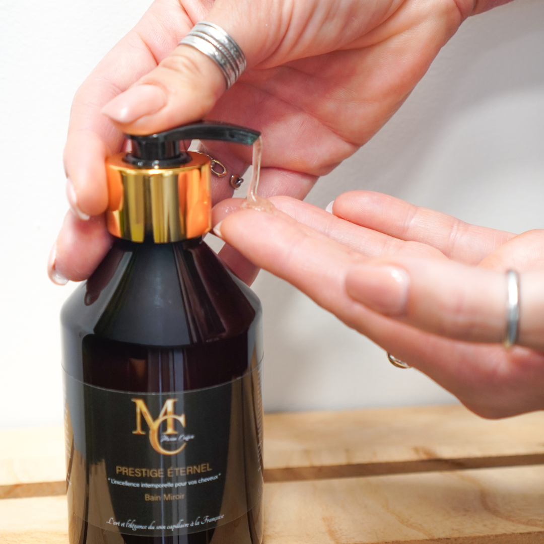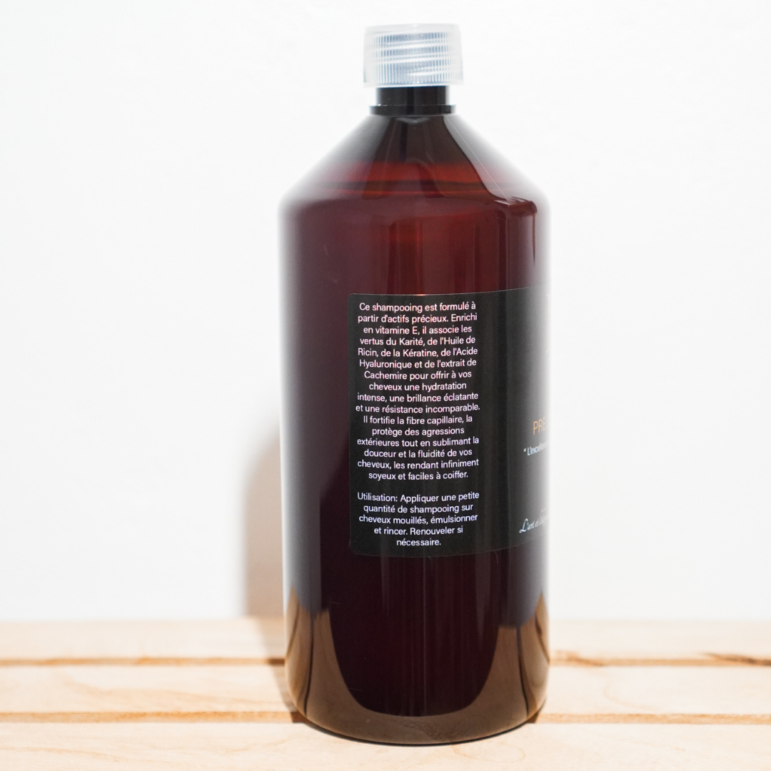 Ce shampooing luxueux, associe les vertus du karité, de l'huile de ricin, vitamine E, acide hyaluronique et extrait de cachemire. Il nettoie en douceur et offre une hydratation profonde, une brillance incomparable et une résistance optimale à vos cheveux. Sa texture veloutée enveloppe chaque mèche et sublime la brillance naturelle des cheveux, pour un reflet miroir à couper le souffle.